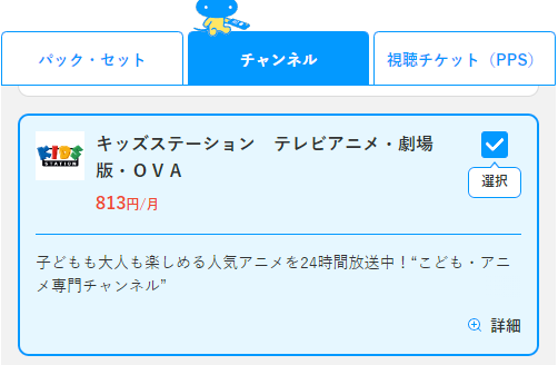 スカパーで契約するチャンネルは、813円の「キッズステーション」を選んでください。