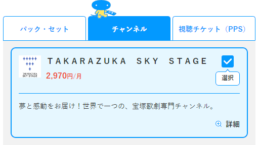 契約するチャンネルは「タカラヅカ・スカイ・ステージ」